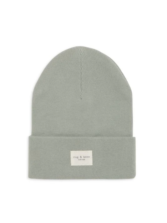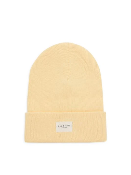 This rib-knit beanie features a logo patch at the front.