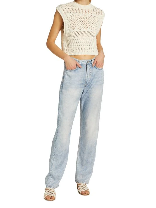 - High-rise, straight-leg silhouette
