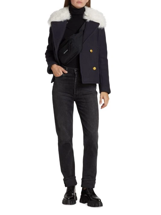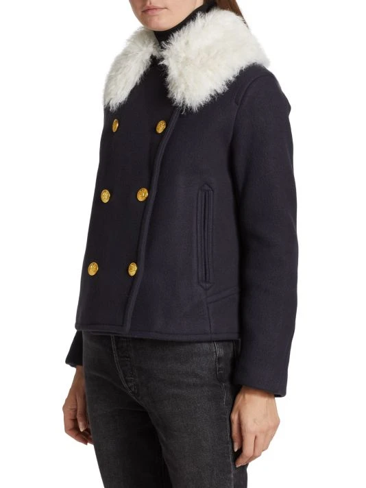 This playful rag & bone Alfie peacoat features a classic double-breasted style with signature fisheye buttons. Showcasing a detachable faux shearling collar, this coat evokes an elegant design.
