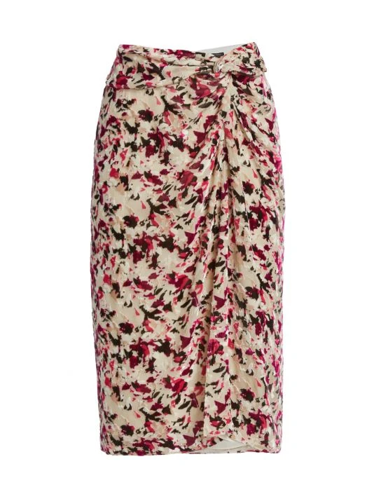 A knot detail at the waist and a thigh-high slit finish this high-waisted midi skirt.