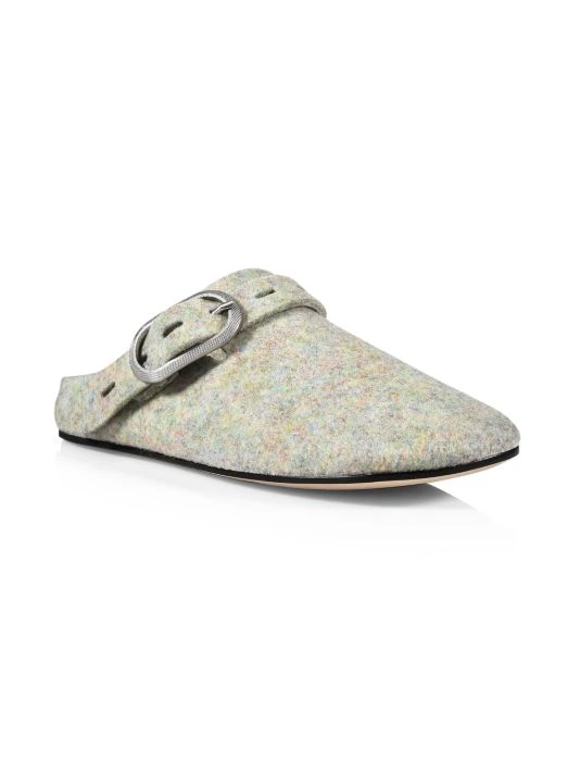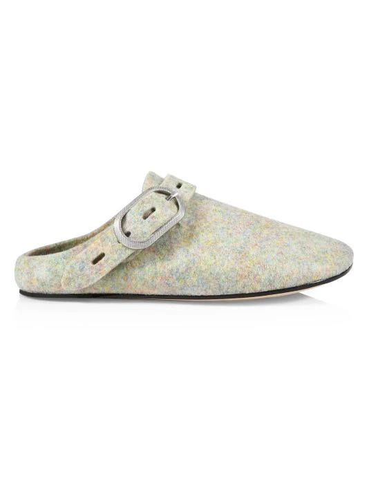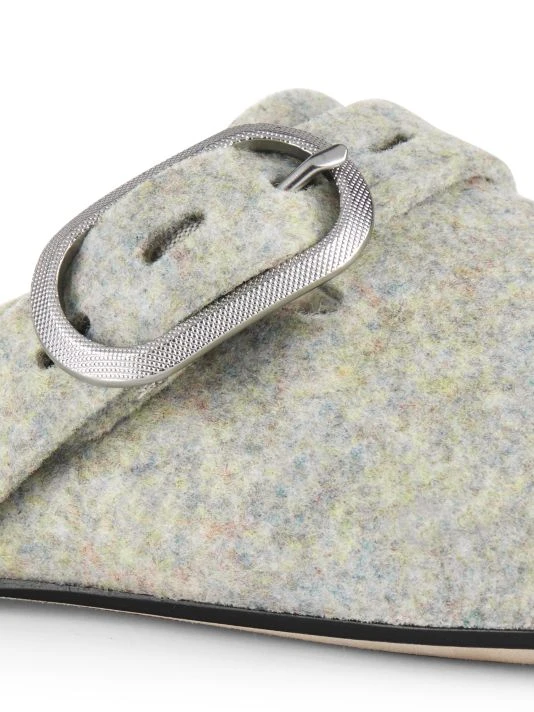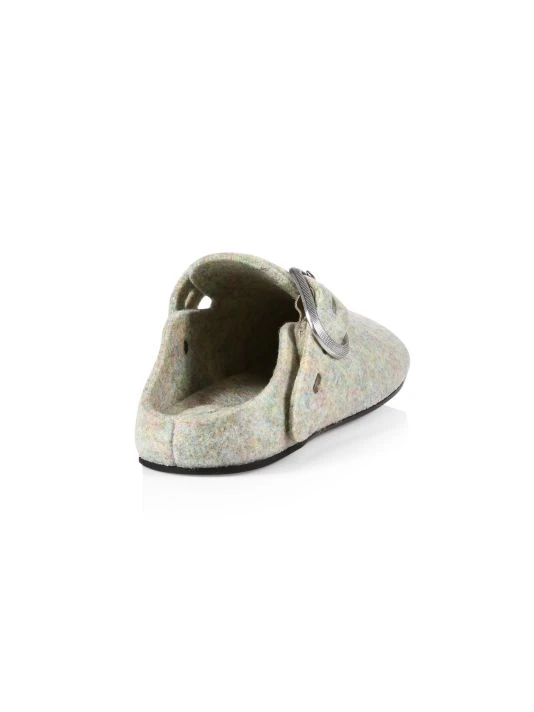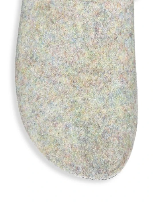 Felt adds texture to these slides, topped with embossed buckle strap.