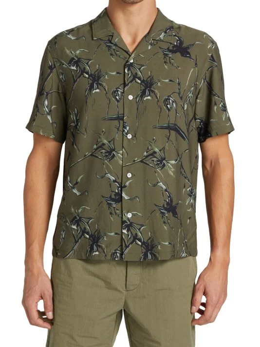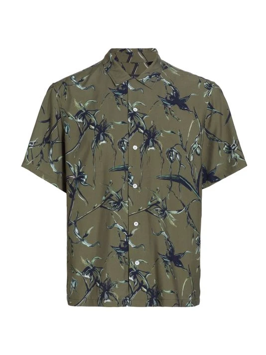 Cut for a relaxed fit, this cotton button-front shirt is printed with an army floral design.