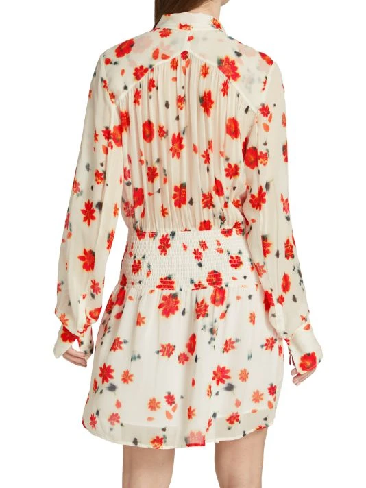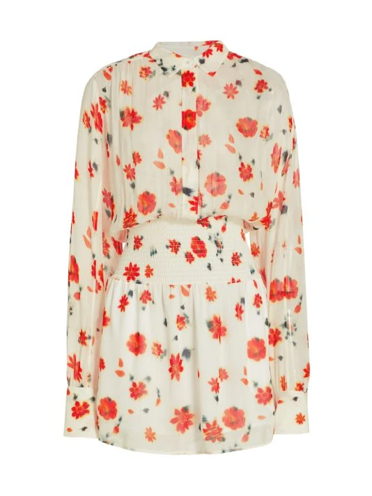 Decorated in a vibrant floral print, rag & bone’s Bailey dress is cinched with a smocked waistband. This piece is finished with long billowy sleeves.