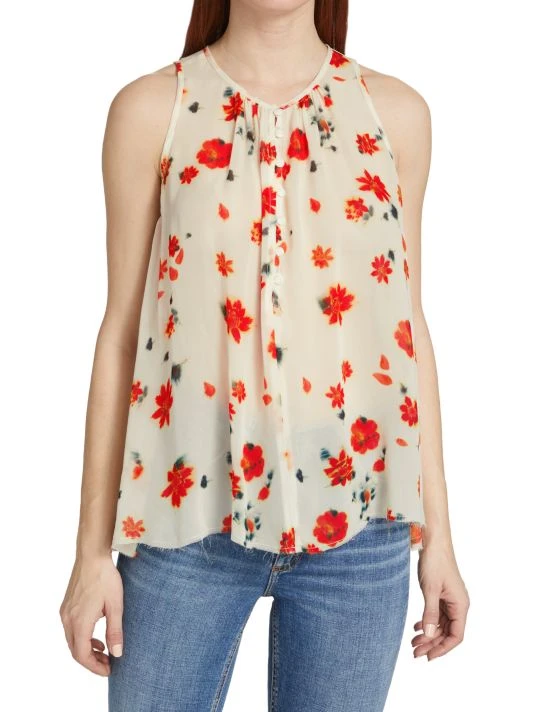 Featuring frayed edges, rag & bone’s Cassie tank top is crafted of floral printed semi-sheer fabric.