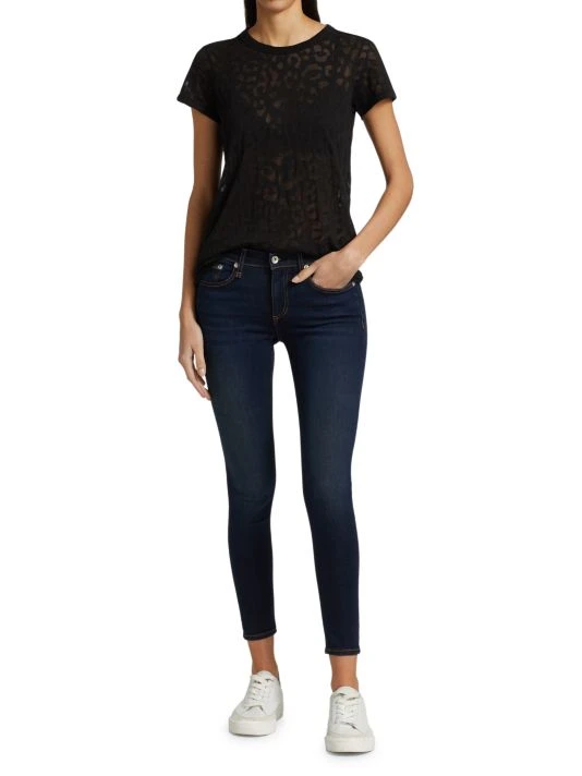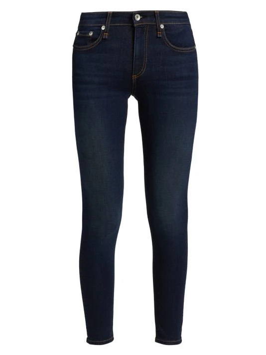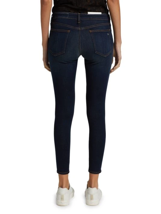 Casual mid-rise jeans with a stretch-blend fabrication, skinny fit, and ankle cut.