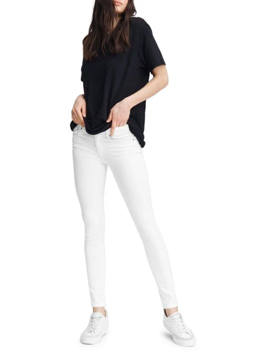 Wearable skinny jeans with comfortable stretch fabrication and a mid-rise waist.