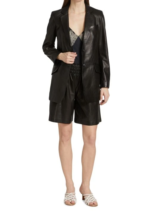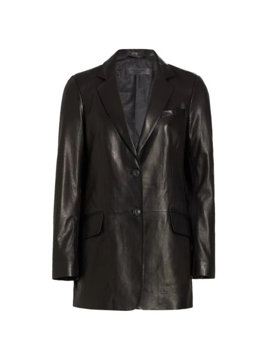 Crafted of smooth lamb leather, the Charles blazer from rag & bone is designed in a single-breasted longline silhouette.