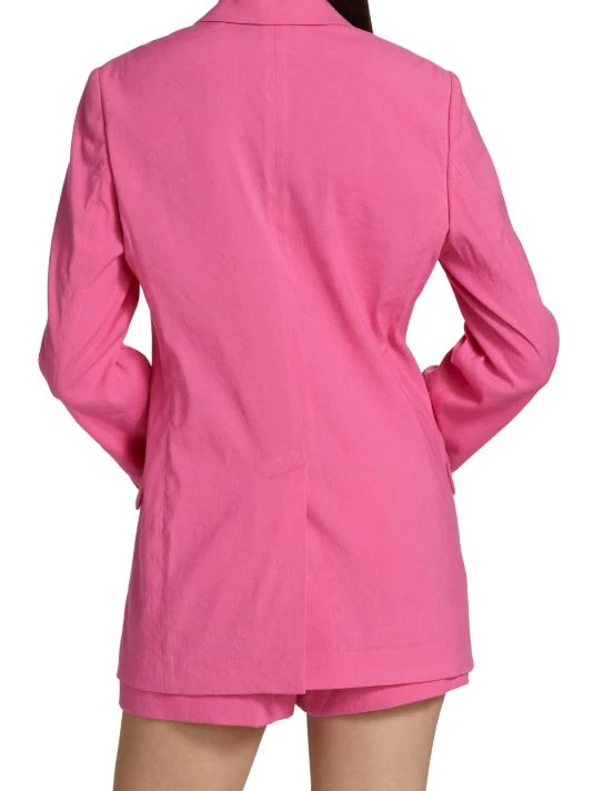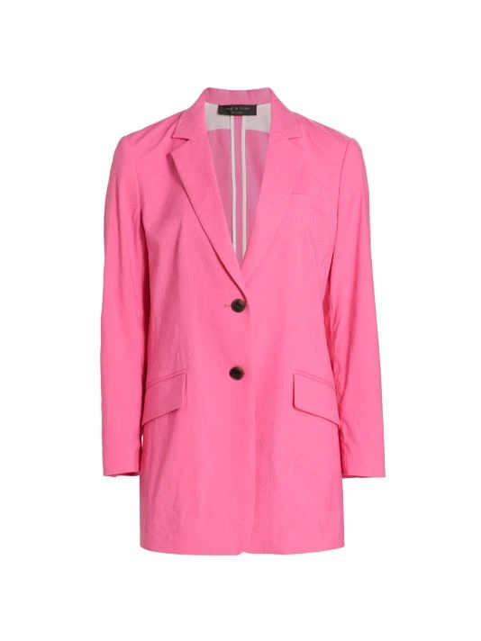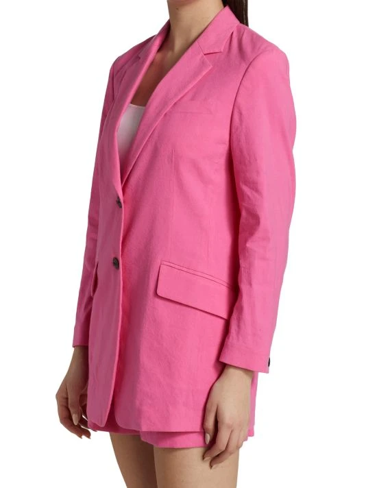 Crafted of a linen blend, this single-breasted blazer is enhanced by contrast button closures.
