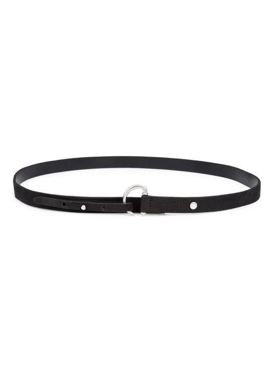 Crafted of grained leather, this hip belt is highlighted with a round silvertone buckle.