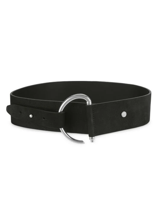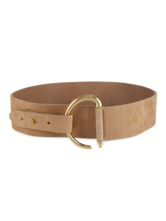 Crafted of buttery soft nubuck leather, this waist belt is highlighted with a round goldtone buckle.
