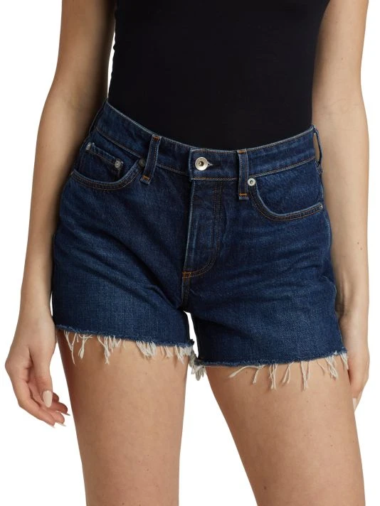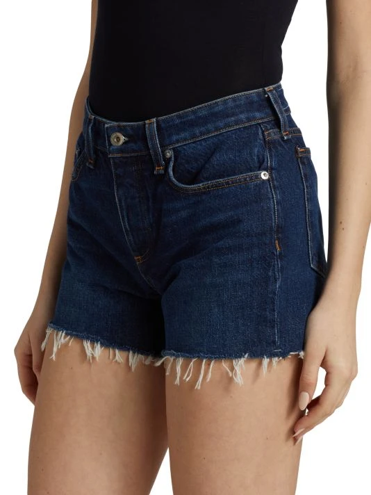Rag & bone’s Dre low-rise denim shorts are crafted of durable cotton, showcasing subtle whiskering at the thighs.