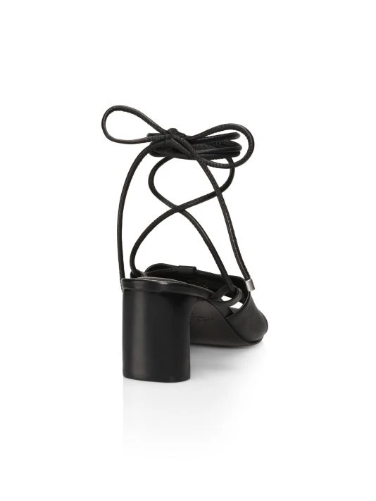 The Emma Tie mules by rag & bone are crafted of rich leather with tubular lace-up straps that wrap around the ankle. The New York City-based brand enhances this pair with a squared toe for a touch of edge.