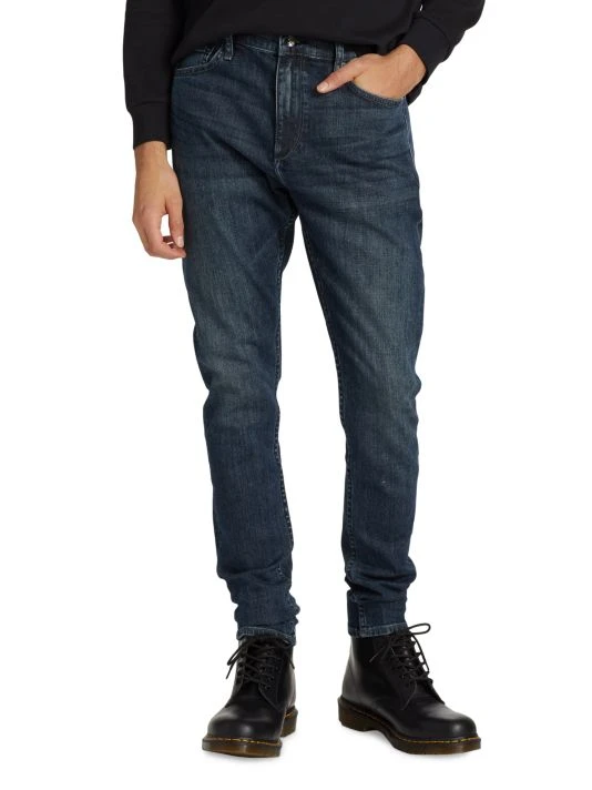 Made of a cotton blend, these skinny fit jeans feature a five-pocket style.