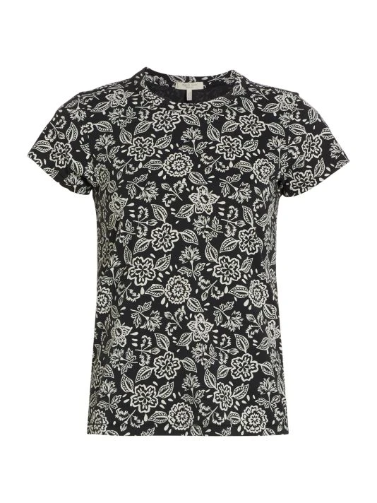 Rag & bone’s T-shirt boasts a playful floral print, tailored with a crewneck and short sleeves.