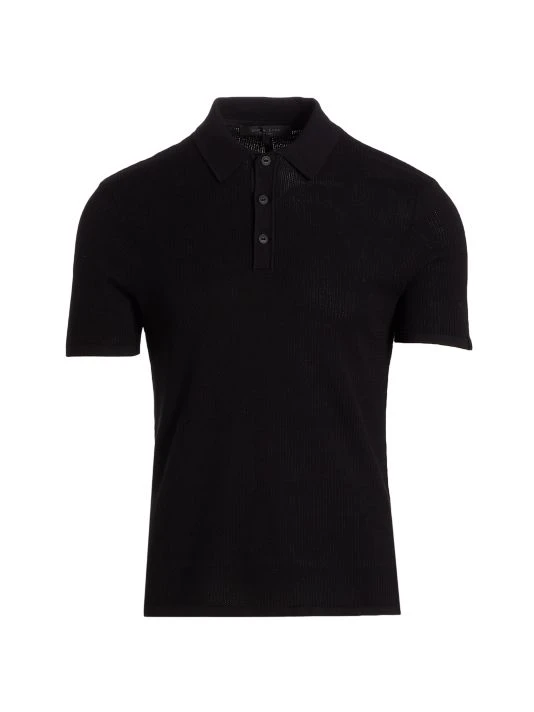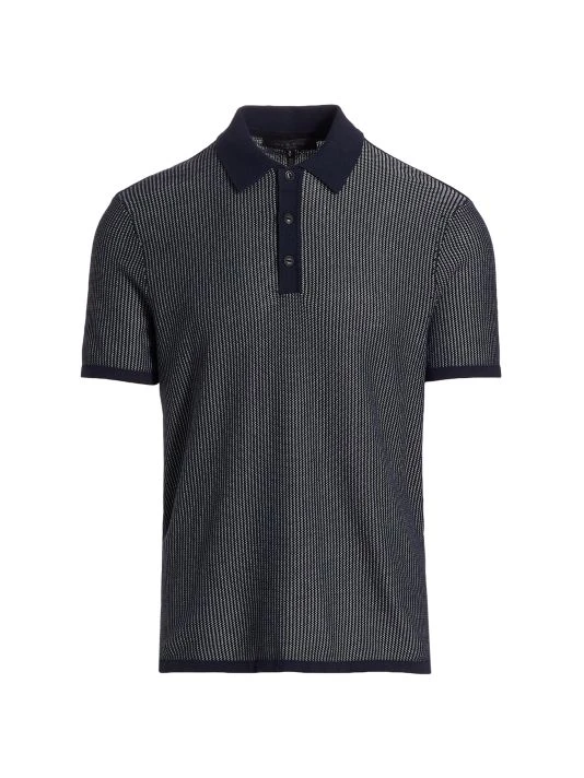 Micro-stripe patterning covers this knit cotton polo shirt, designed with contrast banded trim for a refined finish.