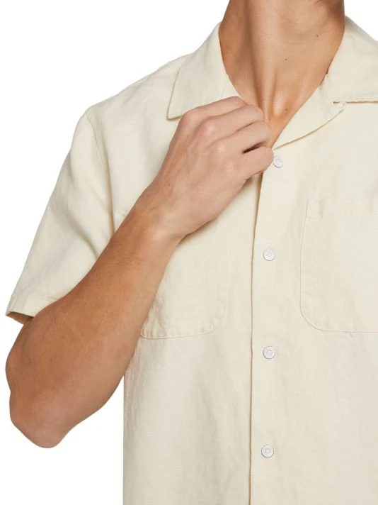 This short-sleeve linen-blend shirt features two patch pockets on the chest.