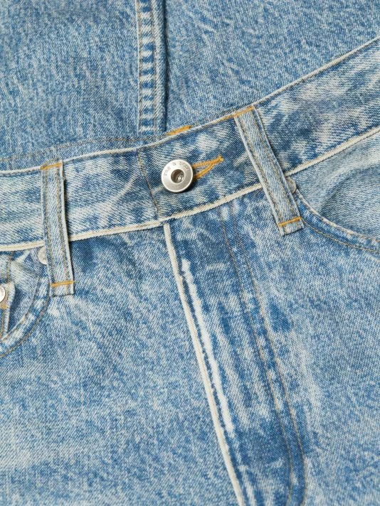 Ultra-soft five-pocket pants in a drapey silhouette printed with distressed denim design.
