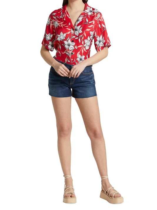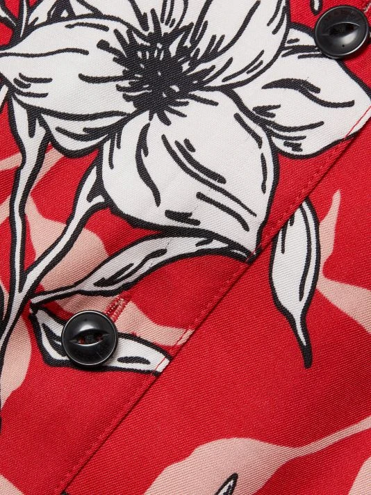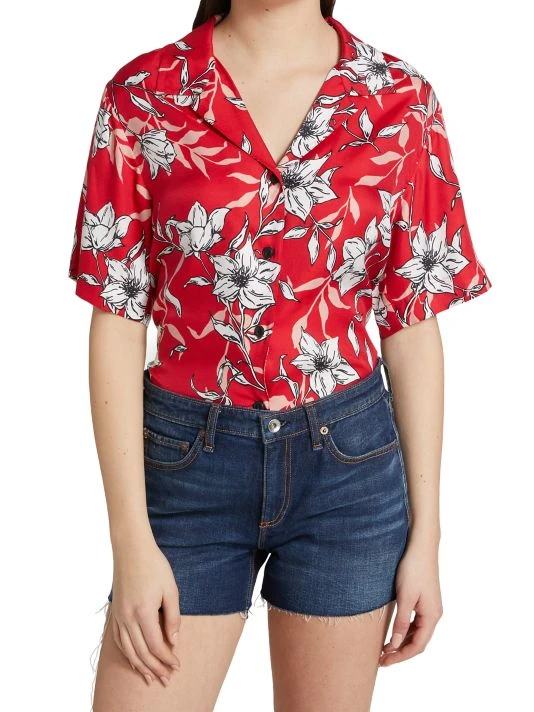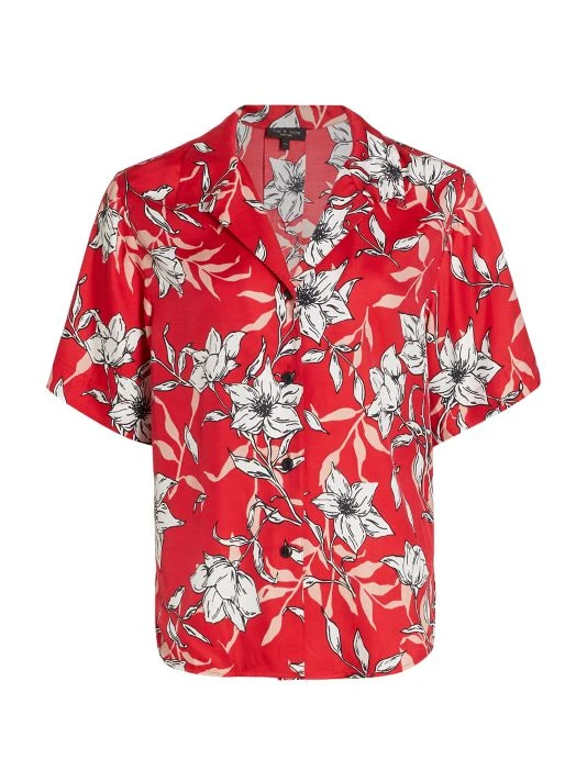 This classic shirt features a bright floral print, crafted of a soft silk-blend.