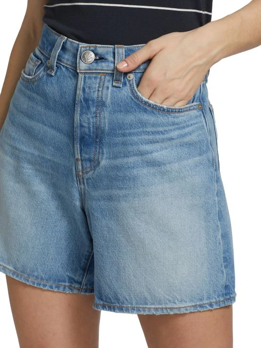An A-line silhouette updates these washed `80s-style denim shorts.