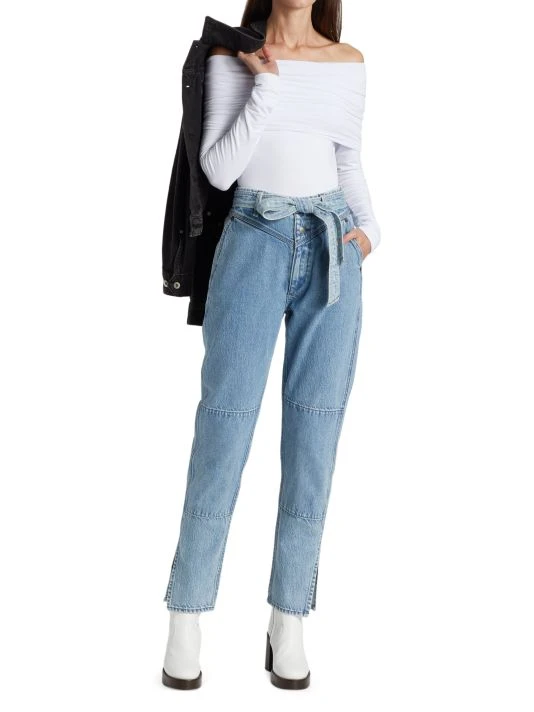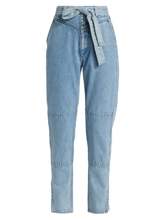 These high-waisted tapered jeans feature a cropped length and removable self-belt.