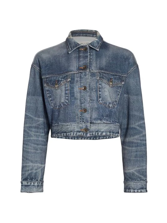 Cut in an ultra-cropped-silhouette, rag & bone’s denim Miramar jacket is complete with printed faux chest patch pockets and printed button detailing at the hem.