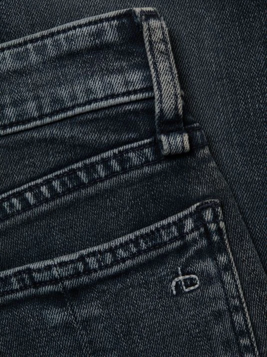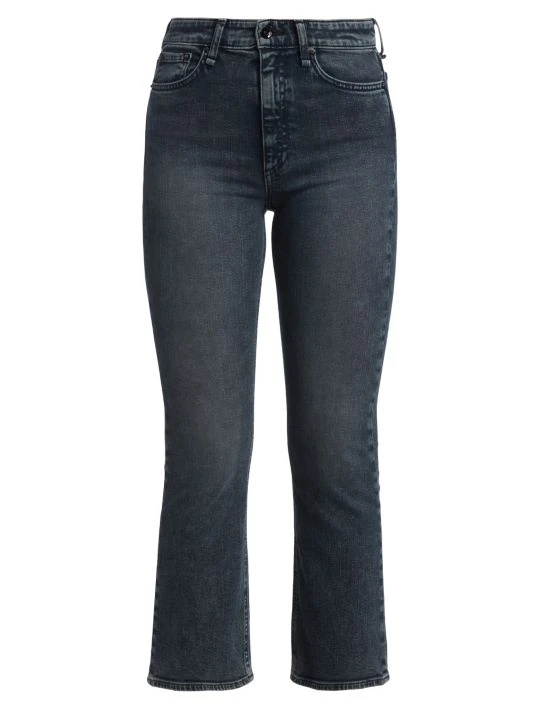 High-rise jeans set in a cropped length, with light whiskering at thighs.