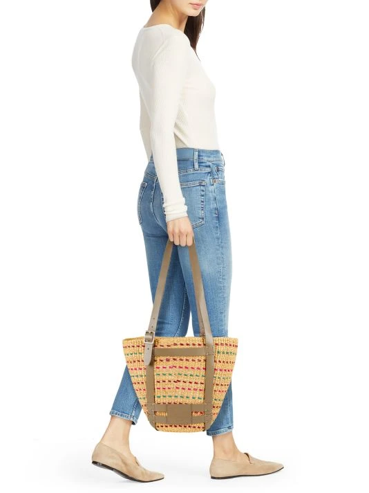 From the rag & bone x AAKS Collaboration. Crafted of multicolored straw, this tote is designed with caged leather straps. This basket silhouette is finished with a logo-debossed patch at the front.