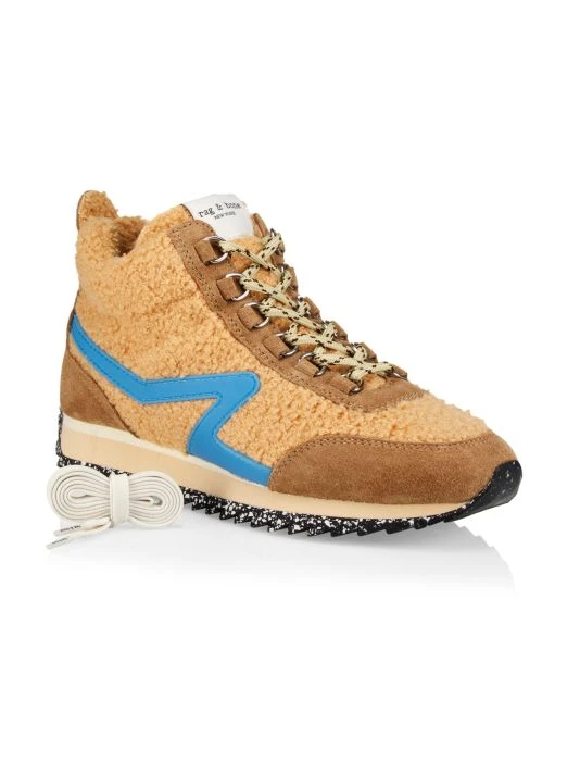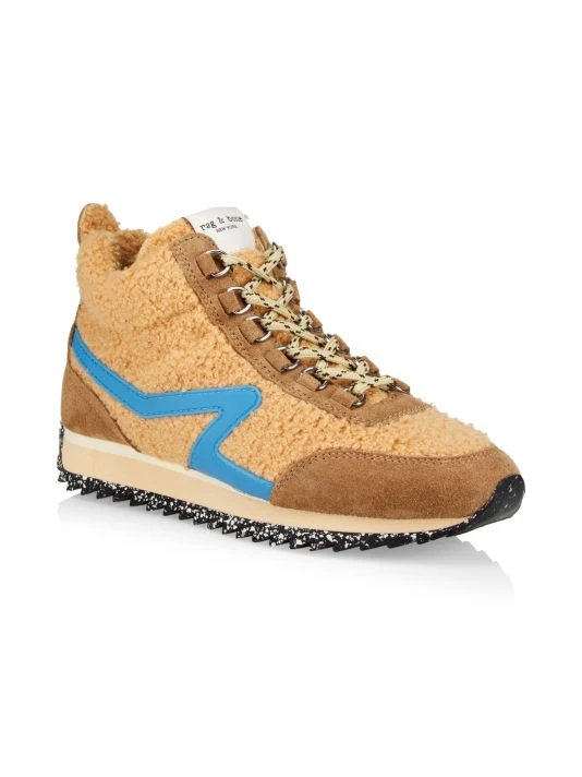 Mid-top hiking sneakers featuring a faux shearling construction, rippled sole and rope laces.