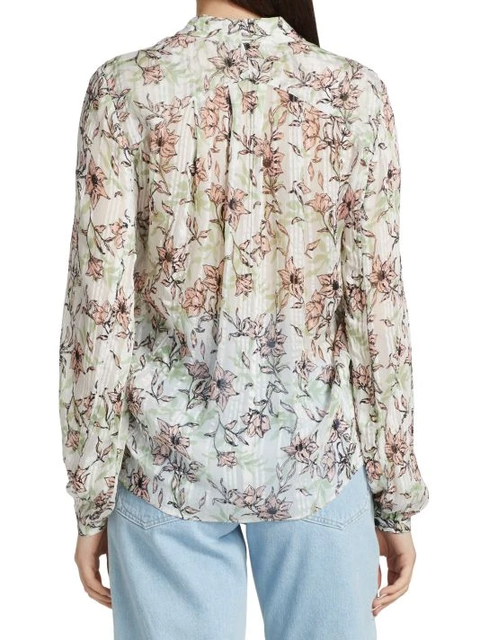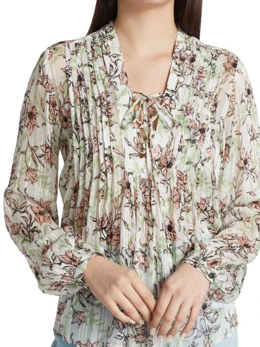 Pintuck seaming shapes this floral lattice top, crafted with metallic threading for a bit of shine.