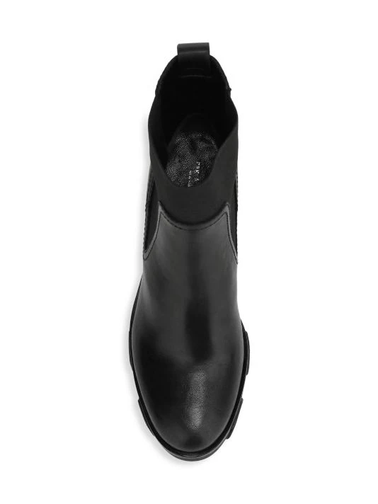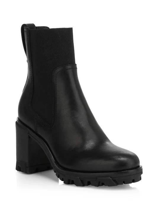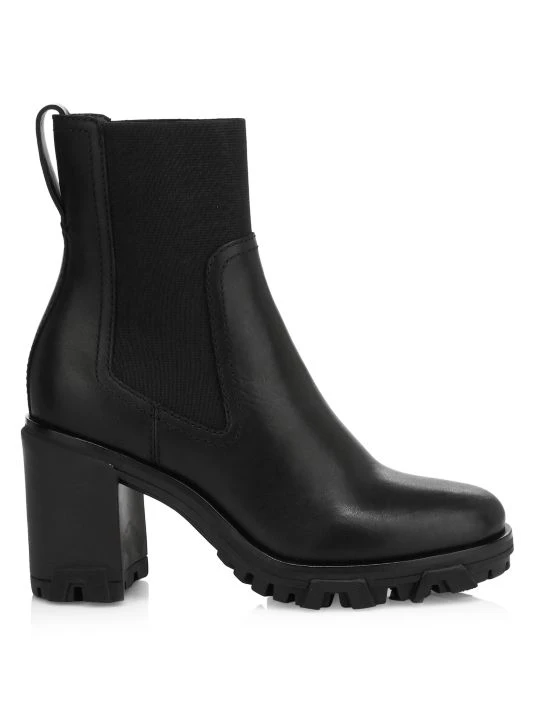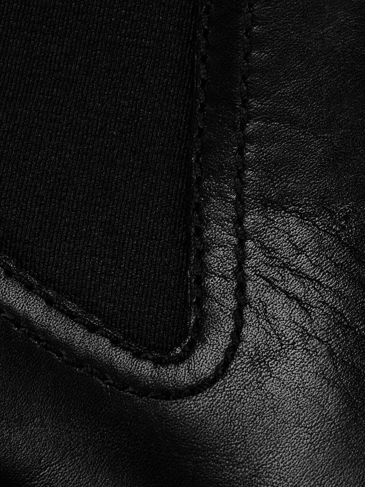 Traditionally rugged lug-sole combat boots are elevated with a luxe leather finish and elasticized side panels.
