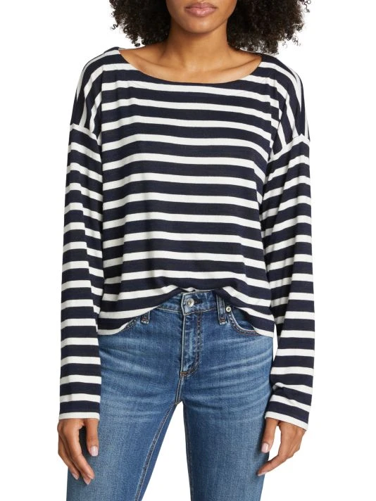 Cut from rib-stitch jersey, rag & bone’s lightweight top flaunts a flattering boatneck.