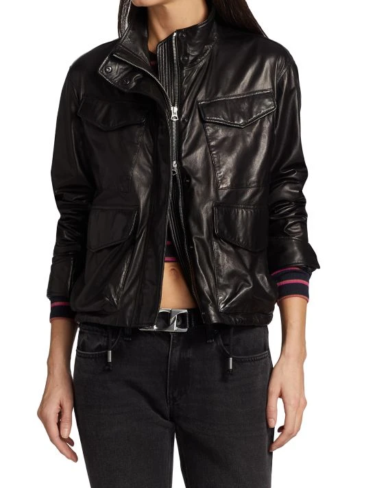 Designed with utilitarian styling, this cropped jacket is cut from luxe, ultra-soft lambskin.